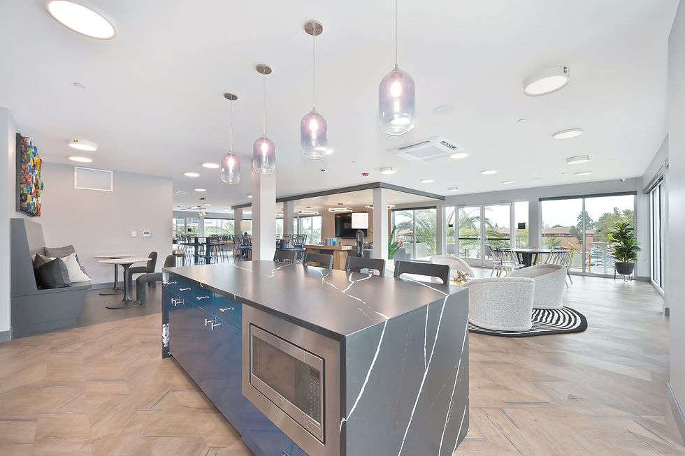 The project features a six-story, 252-unit, 205,000 sq. ft. residential tower, with 103 of the units designated for UC Davis students. The ground floor includes 15,000 sq. ft. of UC Davis administrative space. Amenities for residents include a lounge, fitness center, study room, bike room, game room, and an outdoor deck on the second floor. Adjacent to the residential tower, HRGA has also designed a 35,000 sq. ft. freestanding office building.